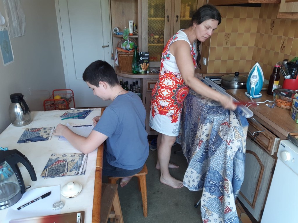 Nous avons ainsi contacté l’association Les Œuvres sociales de la Fraternité, qui héberge notre assemblée et dont le foyer pour migrants reste ouvert. En moins d’une semaine, chacun des 20 résidents disposaient d’un masque aux normes AFNOR. Puis, au vu de notre enthousiasme et notre productivité, nous avons proposé notre service au diaconat de l’Église protestante unie de Loire-Atlantique, qui a plusieurs fois témoigné son soutien à notre communauté. Le diaconat maintient l’aide alimentaire pour de nombreuses familles ; bientôt, elles trouveront dans leur panier un masque en tissu pour ajouter un geste barrière lors de leurs sorties, dans les transports en commun, etc. Un sympathisant a préparé une note explicative, traduite en plusieurs langues. Une Amie a rallié à la démarche des voisin·e·s et des collègues.